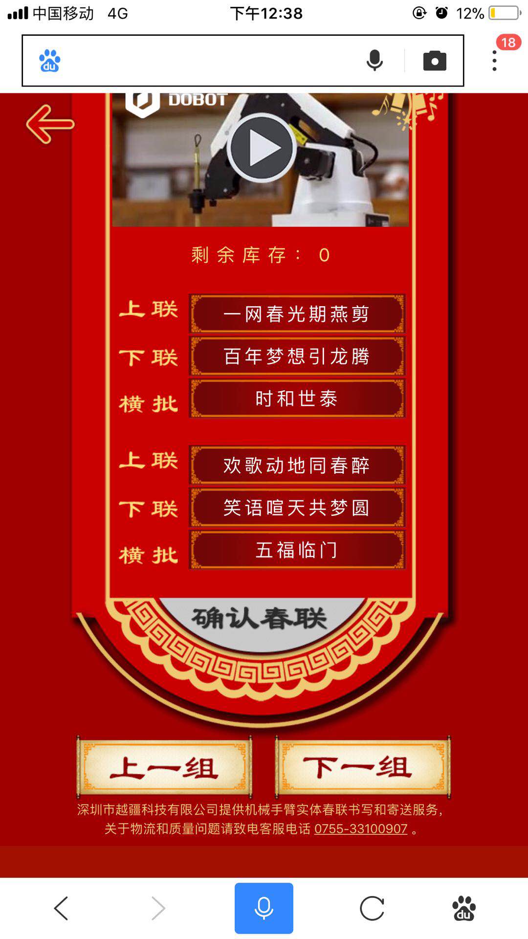 手机百度搜索“智能春联”,用户只需输入关键词,一副合乎对联联律要求的春联就立即呈现在面前。