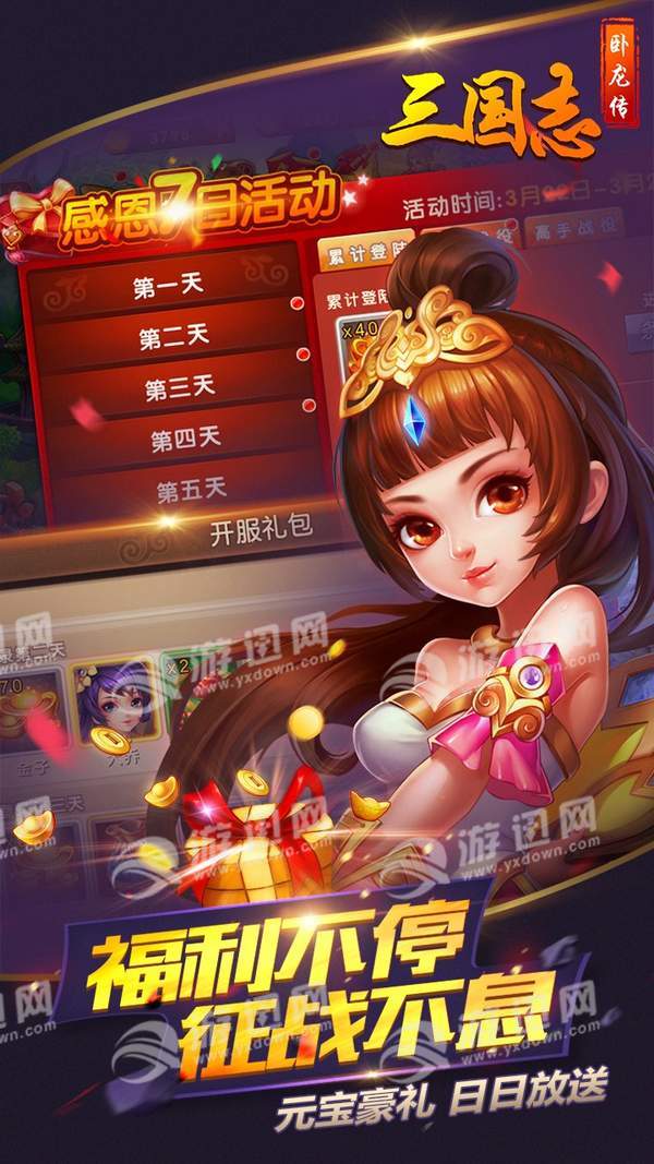 这是一款高品质的三国卡牌回合策略游戏,有军团战、跨服战及丰富的活动。