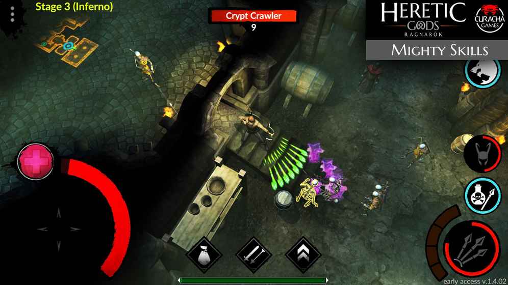 Youarelookingfora"ActionRolePlayingGame"?Well,HereticGods–RagnarokissimplythebestgameforAndroidifyouareravenousforEpicLoot,masteringskillsandtobutcherthroughhordesofmonstersindarkdungeons.HereticGods–RagnarokisanARPGinwhichplayerscanenteradarkworld,fullofdungeonsandmonsters,setinthelandoftheVikingMyths.Yourobjectivewillbetoenterthedepthsofacursedabbeytobanishthehereticalgods.ThecontrolsystemofHereticGods–Ragnarokisintuitiveandisverywelladaptedtotactiledevices.Withthevirtualcrossbarontheleftofthescreenyoucanmoveyourcharacter,whilewiththebuttonsontherightyoucanattackanduseskills.Withjustpressingtheattackbuttons,yourherowillautomaticallytargetthenearestenemy.ThedungeonsofHereticGods–Ragnarokaregeneratedrandomly,soyouwillneverplaytwiceinthesamescenario.Thatsaid,manylevelsareverysimilartoeachother,withdifferentvariationsinarchitectureandespeciallyinthevariationofenemies.Themorelevelsyouraise,thedeeperyoupeintonewdungeonswithstrongerenemiestofight.AveryimportantaspectofHereticGods–Ragnarokistheloot.Youcanfindandequiphundredsandhundredsofdifferentobjects,includingaxes,helmets,gloves,boots,armor,shields,bows,swords,rings,andsoon.Inthevillage,inaddition,wecantradewithitsinhabitantsorevencraftyourownitems.HereticGods–Ragnarokmanagestosuccessfullyadapttheformulaofpopularroleplayinggamestotactiledevices.Forthis,itnotonlyoffersanaccessiblecontrolsystem,butalsosomelevelswitharelativelyshortduration,whichwecanfinishinafewminutesperfectlystyledformobilegaming.•randomgenerateddungeons•shapeupdifferentcharacterbuildsoutof75+skills•adjustablegraphicsettingsforbestperformanceevenonoldhardware•innovativeautotargetingsystem•optionalautofightsystem•infiniterandomgeneratedmagicitems•hundredsofuniqueitemsandsetitems•fullyplayableforfree•3difficulties•ongoingupdatesforevenmoregame-contentHereticGodsgrantsfullplayabilitynowandwillbeupgradedthroughupdates.futureupdateswillincludemore:•uniqueitems•setitems•enemies•bossenemies•quests•skills•gameenvironments