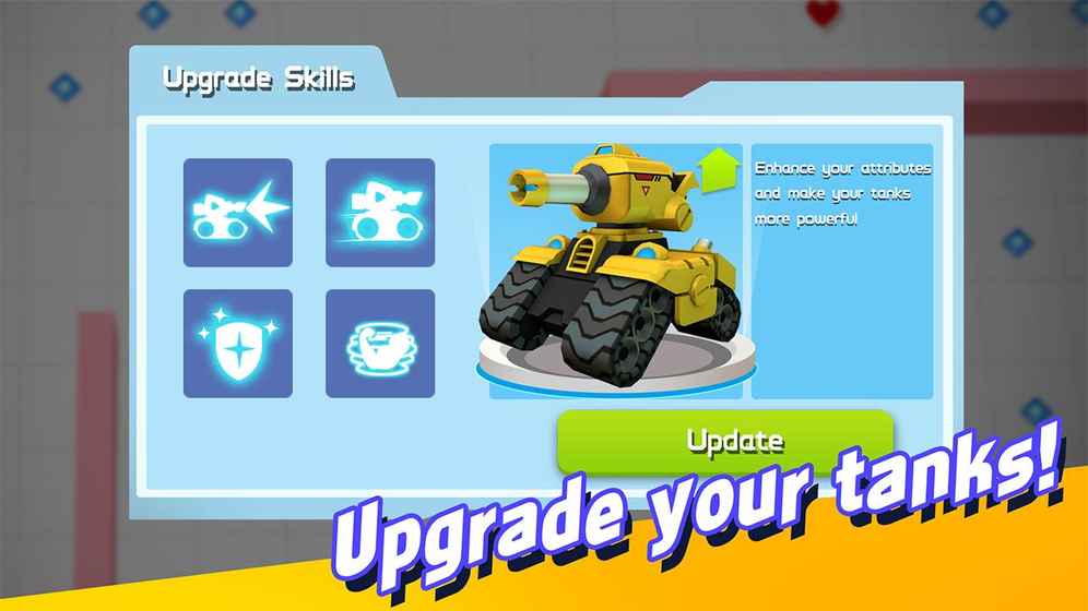 Tankr.io是一款全新的坦克射击游戏。在游戏中玩家将操控一辆可以不断进化变强的坦克在坦克战场中厮杀。搜集战场中的钻石或是击杀敌人的坦克都可以获得经验值,使用这些经验值提升你的坦克性能成为战场中的大魔王吧!游戏指导:--通过虚拟控制杆去操控你的坦克。--敌人出现或者靠近你的坦克时,它会自动锁定敌方目标同时向它们开火射击。--巧妙地充分利用地形和草丛去攻击敌人。--利用地面上出现的道具和补给品,你能存活得更久!--击杀敌人越多,排名就越高!--升级你的坦克,这样在战斗中它会更加出色。游戏特点:--实时坦克战,玩法简单,易于操作!--坦克自动瞄准。--超多道具助你来战!--3D角色和场景,华丽的战斗视觉效果。--炫酷的皮肤和坦克,挑选你喜爱的一款吧!现在下载Tankr.io,享受不一样的战斗,成为坦克英雄吧!