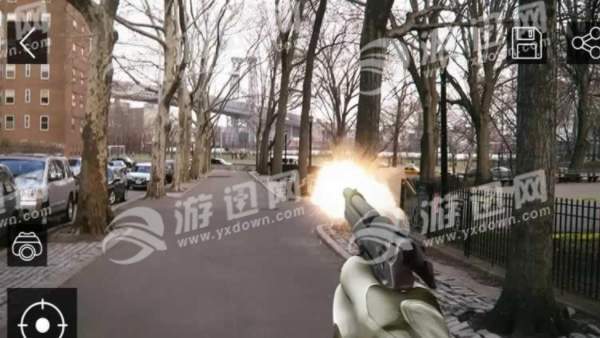 而后通过手机的后置摄像头结合现实场景进行射击,