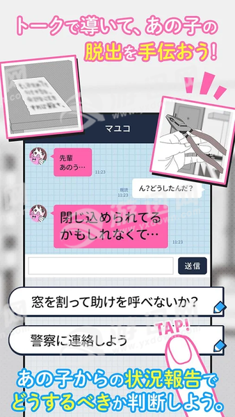 请你为了那个女孩去死吧是一款主打日系画面风格的解谜游戏,在游戏中玩家将扮演一名探秘者,需要帮助女主角不断摆脱恐怖的纠缠,同时发现关卡中隐藏的线索和道具,点击屏幕选择不同选项,逃脱恐怖的追击!
