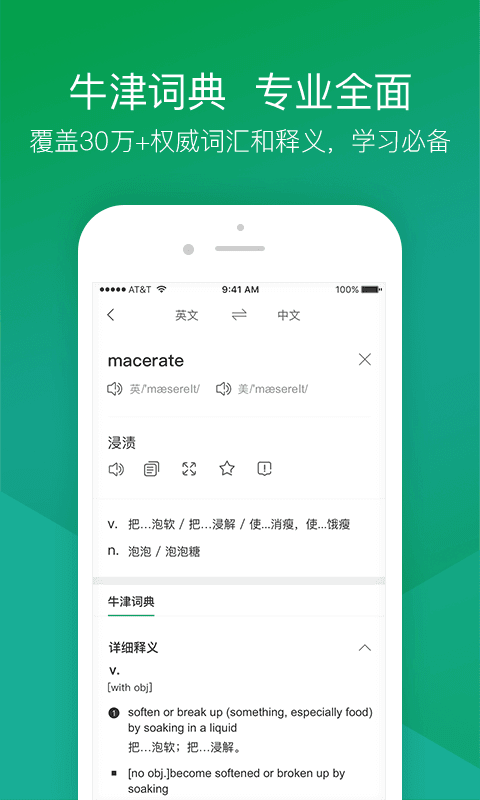 -海量权威词典:覆盖30万本地词条,无需联网即可查看;云端500万词条,联网状态提供网络释义、同反义词、例句、中中释义和英英释义等