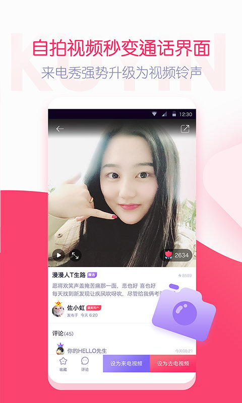 首次支持视频拍摄功能,选择你喜爱的铃声,换上美颜+滤镜,完成即可直接设置为来电视频铃声和去电视频铃声。视频铃声,让你的铃声看得见!