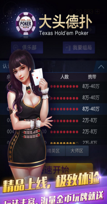 《大头德州扑克》,一款真正不花钱就能无限畅玩的德州游戏。根据最标准的国际德州玩法作为规则,全场全部都是真人在线,让你轻松挑战全球高手,成为一代德州大神!