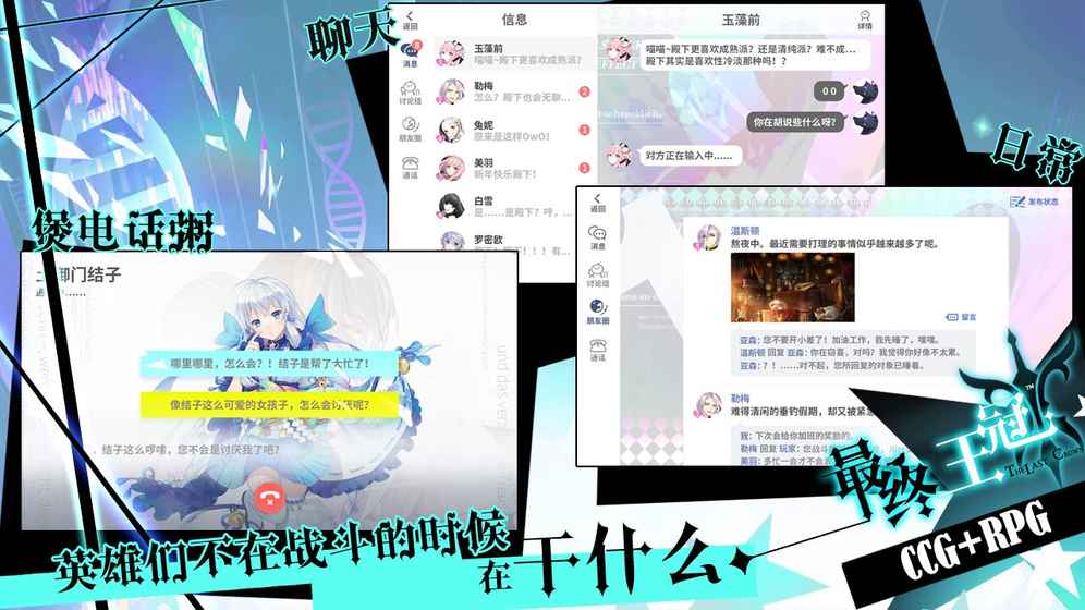 《最终王冠》不限激活码公告【最终王冠】安卓平台计费删档测试将于3月29日14:30正式开启【测试平台】:安卓平台【测试时间】:2018年3月29日14:30~4月12日18:00【客户端下载】:www.zuizhongwangguan.com【网站】:www.zuizhongwangguan.com【安装包大小】:774M【游戏内存需求】:2G感谢殿下们对最终王冠的支持和热情,由于申请人数远超激活码投放数量,为了让更多热情的殿下们希望不要落空,我们已经对服务器进行了扩容,今天(3月30日)免除激活码登陆游戏。如果在游戏中遇到任何问题,可联系我们:客服QQ:2813420034最终王冠交流4群:115083414最终王冠交流3群:624313716最终王冠交流1群:575335603(已满)最终王冠交流2群:707159892(已满)你依然可以在QQ群中下载到游戏包-------------------------------------------------------------------------------------------------------------即刻为王,终结纷争!《最终王冠》是一款一本正经(那是绝对不可能)的王道日系CCG+RPG基姬炼脑手游。这款游戏可能包含热血少年+正经少女+基佬+御姐+伪娘+萝莉+女装大佬+碧池+小破孩+丰富剧情内幕彩蛋内含多元化关系+喂狗粮画面以及各种窒息的操作。游戏特点:首创RPG结合TCG的玩法。40+英雄,200+卡牌,理论上有无穷尽的策略变化。丰富的PVE和PVP模式,也有日常抓娃娃等轻松玩法。国内外知名画师太太和岳父加盟相助。CV正式实装,一线配音老师倾力演出。-------♥关注我们了解最新动态,并有机会获得周边和各种福利哟--------------最终王冠交流4群:115083414最终王冠交流3群:624313716最终王冠测试1群:516717861(已满)最终王冠交流1群:575335603(已满)最终王冠交流2群:707159892(已满)【微博】:最终王冠手游http://weibo.com/zuizhongwangguan【TapTap主页】:https://www.taptap.com/app/31074【百度贴吧】:https://tieba.baidu.com/f?kw=最终王冠