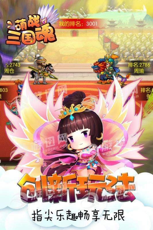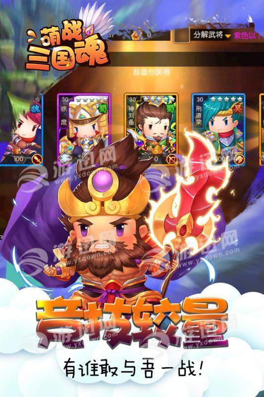 萌战三国魂是一款Q萌卡通画风的三国题材SLG策略对战游戏!玩法与COK这款游戏非常相似哦!你将会成为刘关张中的一位,率领蜀国的千军万马与其他阵营的豪杰决一死战!引入了沙盒随机世界的要素,开采资源兴邦立国两不误!