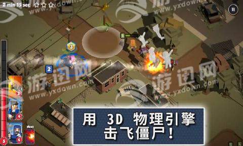 1、采用3D物理引擎打造,利用攻击击飞僵尸;