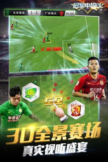 《冠军中超OL》是一款中超足球经理类手机游戏,球员数据庞大专业,超过5000名现役球员,媲美《FM足球经理》的专业数据,每名球员还有照片级的3D头像,还拥有接近PC游戏画质的3D渲染引擎和强大的AI动作引擎,比赛场景真实生动。