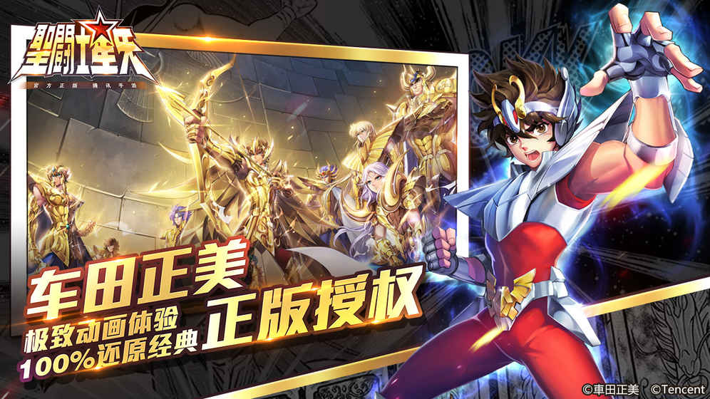 《圣斗士星矢(腾讯)》是由车田正美授权,腾讯旗下天美L1工作室研发运营的圣斗士正版手游。游戏100%还原原著剧情,全系列斗士悉数登场,精致细腻的3D游戏画面,日本顶级声优的倾力加盟,呈现够燃够热血的视听盛宴。丰富的圣斗士收集,百变的阵容搭配,公平趣味的策略战斗,更有银河擂台赛、圣殿争锋、雅典娜试练等大型多人竞技玩法等你挑战。首创星座交友玩法,与默契好友并肩作战!少年,属于你的战斗即将开启!燃烧吧,小宇宙!