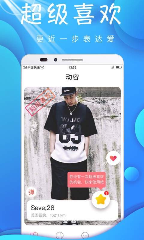 TouchU动容是一款陌生人交友平台软件,主打短视频交友服务,用户可以上传自己的短视频来吸引其他用户,支持左右滑动拒绝或者接受陌生人交友!同时软件也支持视频弹幕功能,当然游戏还有心动对象推荐功能,软件可以根据你的交友条件来为你推荐符合的对象,有兴趣的用户可以下载看看!