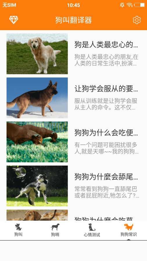 狗叫翻译器是一款专为有狗狗的主人们准备的一款宠物语言翻译软件,这款软件主要可以帮助你通过解读狗狗的肢体语言以及汪汪声帮助你了解你家宠物的意思!同时软件还为主人们提供狗狗响片训练功能,让你家宠物更听你的话~有兴趣的主人们来下载吧!
