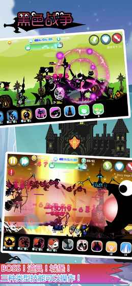 独特的剪影风格-推图出兵新玩法-休闲操作单机手游。黑色帝国遭受了幽灵的袭击,人民变身为恶魔。国王派你建立一个强大的军队,摧毁恶魔巢穴,恢复帝国往日的繁荣。玩法:1战场合理点击出兵,操控所有人的走位,操控boss技能,在适合时间使用道具,关键时刻释放城堡技能。2玩家需要合理搭配好自己的战队,征服不同功能的恶魔军团。3玩家需要收集和升级兵种,城堡,道具,这3个基本战队元素。4城堡和兵种做了种族天赋属性加成,以及类型克制两大属性功能。5玩家合理规划地面,低空,高空,太空4条道路的出兵配置。6军团助战的功能,让每个兵种都发挥自己的力量极限。