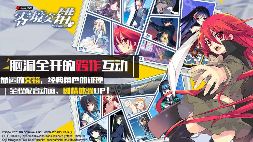 豪华的角色阵容包括《魔法禁书目录》《刀剑神域》《灼眼的夏娜》《魔法科高校的劣等生》《我的妹妹哪有这么可爱!》《无头骑士异闻录》在内的25部电击文库超人气轻小说明星角色同台竞技,阵容豪华程度前所未有!精彩的剧情表现突破次元,跨作互动。当Lv.5的炮姐和Lv.9的黑雪姬见面,当上条同学不幸地被静雄扔的自动贩卖机命中,当桐乃看到了女篮社的妹妹们……意外的故事就此展开。角川电击文库严格监修,轻小说原作者亲自润色,台词原汁原味,人设拒绝崩坏。顶级画师创作立绘,搭配原班声优配音,给所有粉丝带来视听觉盛宴。爽快的游戏体验套路简单易上手,Lv.0菜鸟也能打出华丽连击!超电磁炮!星爆气流斩!!质量爆散!!!招牌技能完美再现,巅峰对决一触即发!作品列表:《魔法禁书目录》《打工吧!魔王大人》《刀剑神域》《加速世界》《重装武器》《灼眼的夏娜》《萝球社》《樱花庄的宠物女孩》《无头骑士异闻录》《电波女与青春男》《我的妹妹不可能那么可爱》《扑杀天使朵库萝》《龙与虎》《境界线上的地平线》《魔法科高校的劣等生》《线上游戏的老婆不可能是女生》《伊里野的天空、UFO之夏》《黑色子弹》《狼与香辛料》《从零开始的魔法书》《噬血狂袭》《幻影死神》《金色时光》《战场的女武神》《奇诺之旅》《刀剑神域外传GunGaleOnline》CV列表:户松遥松冈祯丞悠木碧竹达彩奈伊藤加奈惠津田美波钉宫理惠伊藤静佐藤利奈新井里美阿部敦冈本信彦丰崎爱生日高里菜小野大辅泽城美雪神谷浩史三泽纱千香茅野爱衣丰永利行间岛淳司花泽香菜小仓唯井口裕香早见沙织中村悠一堀江由衣种田梨沙细谷佳正梶裕贵日笠阳子逢坂良太花江夏树石川界人铃木绘理三木真一郎高山南大原沙耶香井上麻里奈小清水亚美清水香里久川绫大龟明日香千叶纱子野中蓝高桥花林插画师:abecE-jiKomatsu029(Oniku)KanzakihiroKanaIshidaKiyotakaHaimuraKejiMizoguchiKoujiOgataKouhakuKurobosiSakiUkaiSatoyasu(TENKY)SuzuhitoYasudaShizumayoshinoriTinkleTorishimoNagiryoNoiziItoHisasiHIMAManyakoYasuBurikiJyuuAyakura©SEGA ©2017KADOKAWAASCIIMEDIAWORKS©91Act