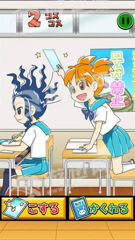 静电少女是一款拥有经典日系画面风格的快节奏游戏!游戏考验玩家的反应速度,通过点击屏幕来快速做出恶搞动作,同时还要保持不会被其他人发现,快来下载游戏,一起在游戏之中恶搞你的同学吧!