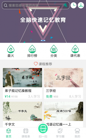 眼巴巴学堂是一个全脑教育在线学习系统,依托于强大的全脑教育资源,提供快速阅读,快速记忆,全面开发大脑的特色教育内容,让会员可以轻松的提高自己的阅读能力,记忆能力,学习能力。提高效率。同时提供各学科各行业的学习资源,会员可以进行相关资源的学习,授课,交流。