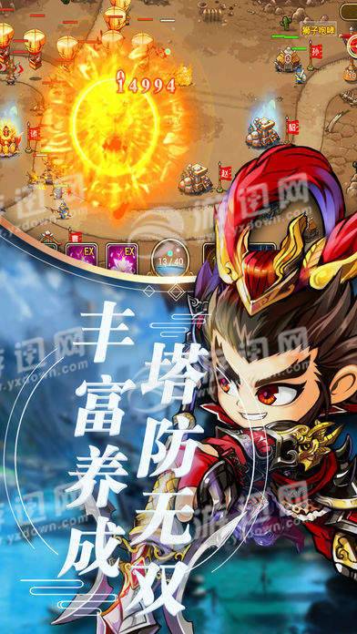 PVE塔防模式,特色300关卡征战副本,每个关卡都是一个拼实力、拼智力的角逐,玩家需将培养好的武将,以最佳的方式安排出战,搭配每个武将的特色技能,合理利用征战中附加的技能属性,权谋策略,斗智斗勇!