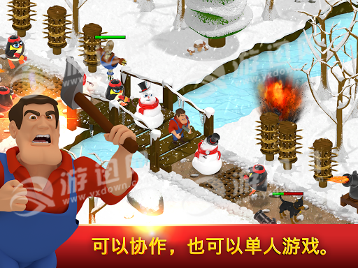 战斗兄弟塔防是一款集合了相当多要素的真人合作策略塔防游戏!玩家将有机会与全球的玩家尽情感受其中的乐趣!支持双人合作塔防,你需要在不同的场景中合理设置机关来抵御恼人的动物侵略你的农场!你需要时刻环顾四面八方来抵御进攻哦!