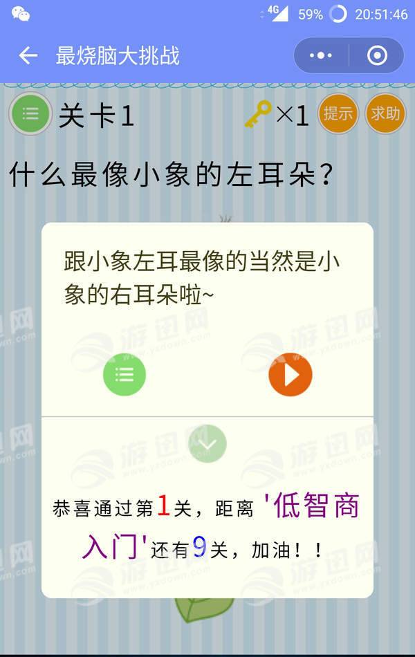 最烧脑大挑战带给大家,一款玩法超级有趣的小游戏,每一个关卡都十分挑战你的智力哦,有时候换个角度也能解锁正确答案,喜欢的朋友一起试试吧。