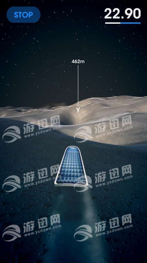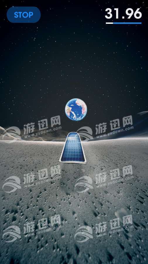 你拿着一块太阳能板,在满月的尘土飞扬的山丘和陡峭的陨石坑中间滑行冲浪。你可以自由的滑行,也可以设置目标终点来练习。