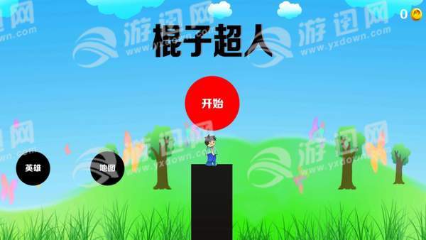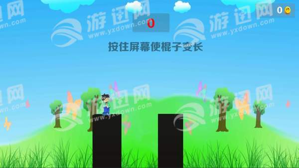 1、很简单的一个小游戏,不过玩家要把握棍子变长短的节奏,找准需要的长度松开手,让我们棍子超人安全走过去;