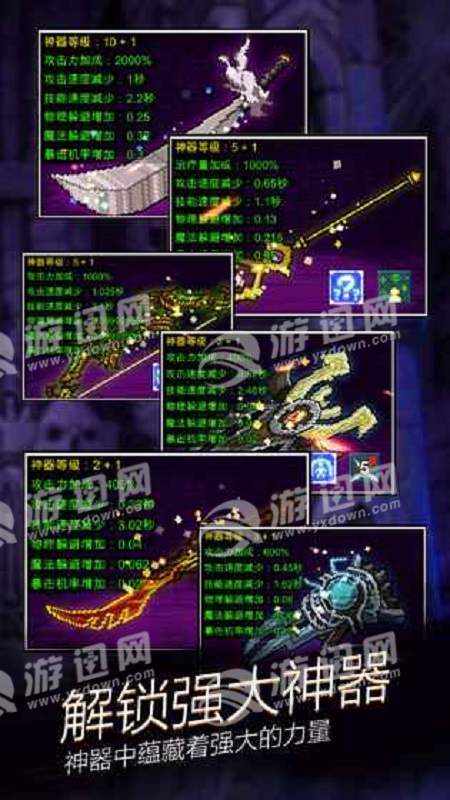 每个英雄都有一把传说中的神器,用资源可以升级这些强大的神器。