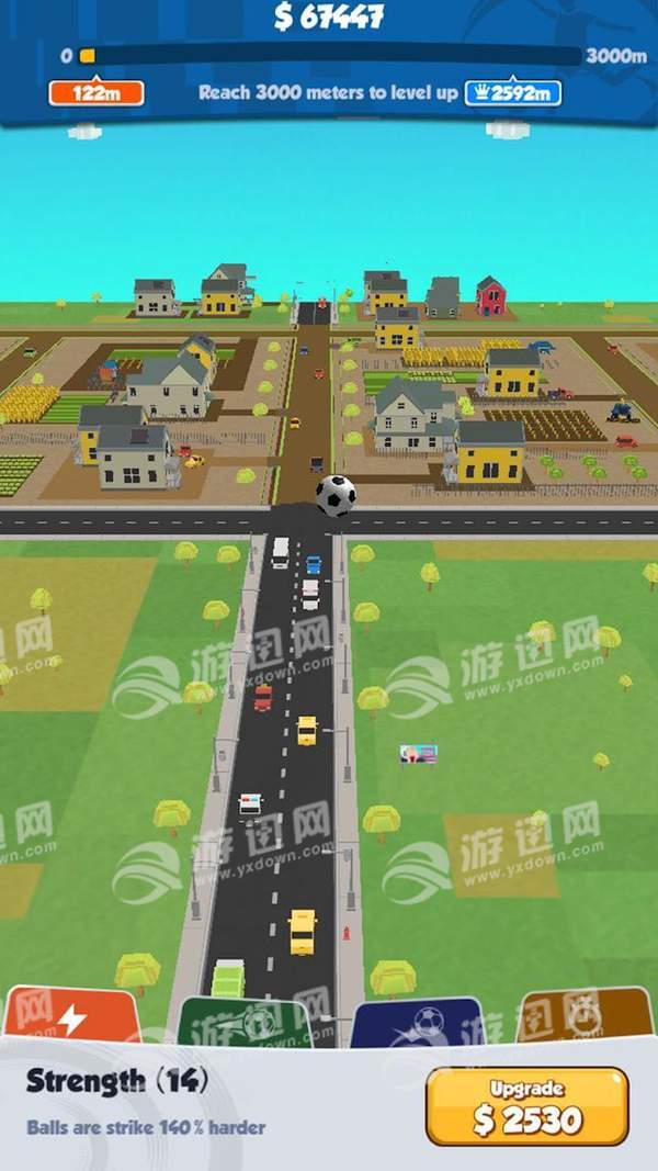 游戏过程中赚取的金币可以用来升级球员技能,踢得越远分数越高哦~
