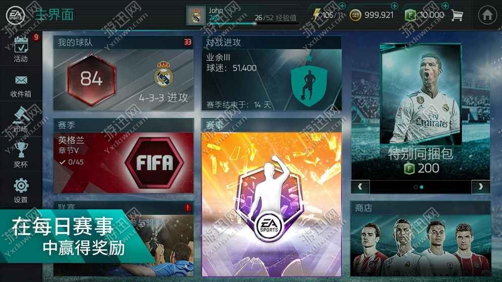《FIFA足球世界FIFAMobile》已重新设计,将为您带来最真实、刺激的足球手游体验!获取一项免费CristianoRonaldo物品,即可开始打造和管理您的球队。将任意球员训练到足球巨星水平、向对手发起进攻,并在全赛季期间每日查看新内容。另外,游戏的安装包小于100MB,可让您快速下载游戏。不论您是一名久经沙场的高手或是一名刚入球场的懵懂新手,《FIFAMobile》都是可以满足您的足球游戏。