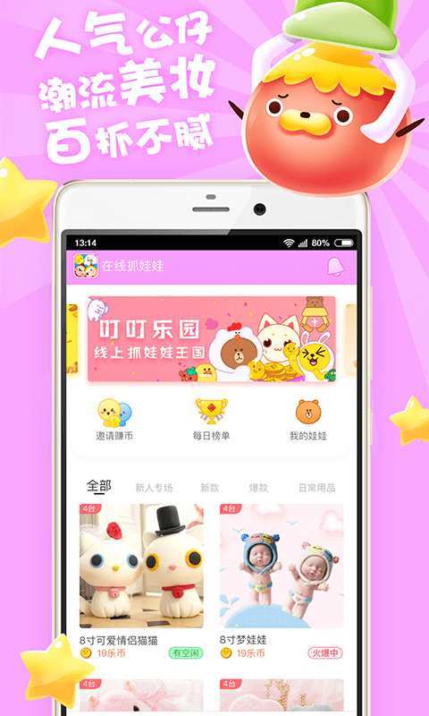 夹娃娃部落是一款线上手机抓娃娃软件,用户可以通过这款游戏体验到在家抓娃娃的乐趣!现实模拟画面,游戏中也有很多不同种类的娃娃机器可以选择,如果你真的抓到了娃娃也可以给你免费送到家中!有兴趣的可以下载抓抓看!