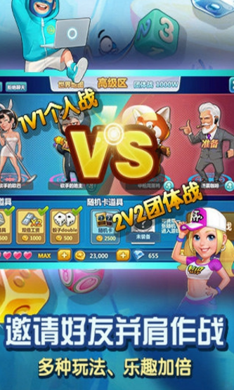 《天天斗富翁》是知名手游研发商继《大掌门》《乱世曲》后又一款精品手游力作;该游戏全面革新了大富翁经典“掷骰子”玩法;创造性的设置了“奢华装备系统”和“骰子控制”系统,大大加强了游戏的可玩性和操作性。此外,游戏还加入了明星角色、世界地图、联网对战等许多潮流元素,玩家不仅可以在能和好友一起游戏Happy,还能在指尖环游世界。