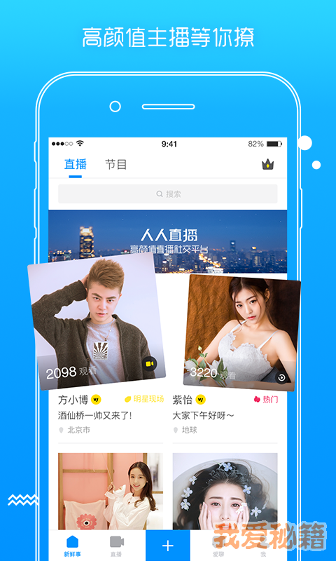 3.【在线直播】观看劲歌热舞、聊天游戏互动、点歌送礼还能浪漫表白。