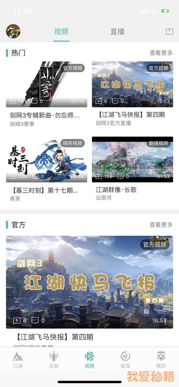 3.视频:汇集剑网3各类同人、竞技、休闲主播的直播及视频,专属江湖盛宴。