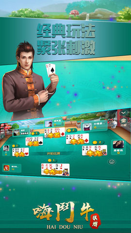《嗨斗牛》是一款经典棋牌类手机游戏,玩家在游戏中可通过互丢礼物,和聊天等形式进行交互,极大的增加了游戏的乐趣。欢迎各位大佬下载游戏玩耍吧!