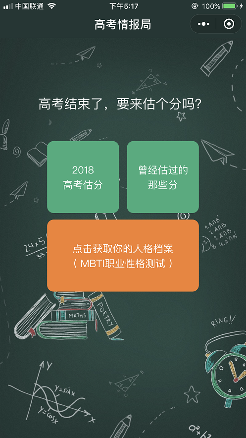 1、使用微信扫描页面上方二维码进入高考情报局小程序;