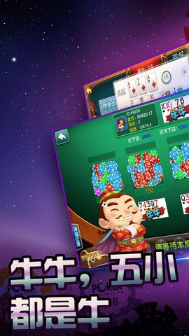 明星电玩-是一款玩家自由畅玩的棋牌游戏,百人牛牛简单暴力,没有任何限制的轻松。斗地主画面清新,游戏稳定流程,多种刺激玩法,超多炸弹。十三张游戏特有的一键智能组牌使玩家上手更加容易,策略多多,激情不断。国内专业顶尖的防作弊技术,让你不用担心任何作弊问题,安安心心,舒舒服服的打牌赢金币!做人要做人上人,玩牌只玩十三张!