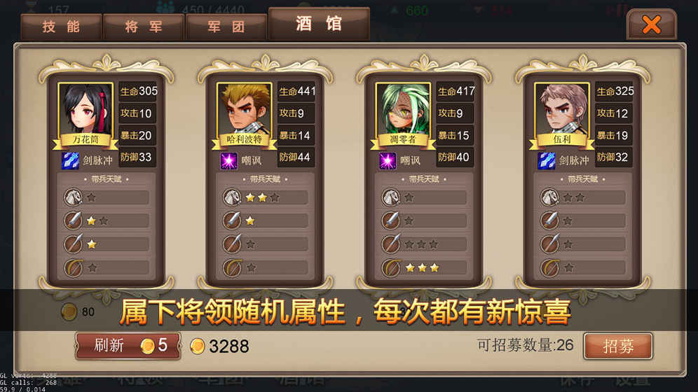 游戏玩法这是一款策略+ARPG游戏。玩家将扮演一个军团长的角色,装备技能,招募将领,编制出战的兵种与阵容,然后带领你的军团去统一整个世界。除了自己的军团外,还能建立属下军团,属下军团是战是防,策略由玩家决定。跟传统的ARPG不一样的是,游戏中玩家带领的是一个小队,并且亲自参与到战斗中去。所以战场上的胜负不单取决于双方的排兵布阵和技能搭配,玩家的操控也能产生积极的影响。独特的划屏操作也能让玩家体验到冲击的快感。游戏特色(1)将领,技能,兵种,阵容皆可自由搭配(2)玩家要亲自控制军团长—即英雄小队参与战斗,感受战斗的乐趣(3)玩家建立和部署属下军团,感受军团之长对属下军团的下达命令的策略乐趣