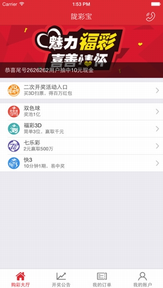 2、彩票开奖提醒,第一时间推送双色球、大乐透等开奖号码