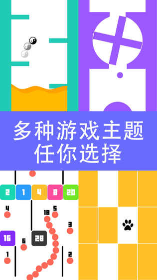 ???更多选择的游戏主题,更多有趣的模式,流畅的游戏体验,无内购,清新干净之极???别出白线是一款快节奏的虐心小游戏合集!游戏玩法简单,设计简洁,非常容易上瘾。?45种独特的模式?【跟随模式】:手指按住小球,让它跟随你的手指移动。【重力模式】:左右晃动手机,控制小球移动。【面板模式】:在固定的控制面板上移动手指,控制小球移动。【摇杆模式】:使用虚拟摇杆控制小球的移动。【双线模式】:双管齐下,同时按住两个球,让他们跟随你的手指移动。【躲避模式】:别出白线同时还要躲避哪些漂浮不定的圈圈,稍有不甚,就将粉身碎骨哦。【疾行模式】:点击屏幕该变小球的前进方向,躲避障碍物。【冲刺模式】:触摸屏幕加速小球往上冲刺,记住不要碰到其他障碍。【闪躲模式】:点击屏幕左右移动障碍,请不要阻止小球下落。【分离模式】:按住屏幕,分开两个小球,躲避障碍物。【攀爬模式】:点击屏幕让小球沿着左右墙壁攀爬。【双车模式】:控制两辆小车,躲避方型,收集圆形。【狂奔模式】:按住屏幕左边或者右边移动小球,松手小球回到中间。【跳跃模式】:点击左边或者右边屏幕完成跳或者交换。【粉碎模式】:点击粉碎迎面而来的砖块。【接球模式】:点击旋转,接住相同颜色的小球。【双块模式】:同时控制两个方块,点击左右屏幕跳跃躲避障碍。【蹦跳模式】:控制方块往上蹦跳,轻敲屏幕短跳,长按屏幕跳的更高。【飞跃模式】:轻敲屏幕,让小球飞到上面的线上去,不要碰到其他障碍。【激进模式】:按住屏幕左右移动小球,快速通过障碍。【匹配模式】:点击移动底部形状,匹配下落的形状。【蛙跳模式】:轻敲屏幕,使方块通过间隙。【旋转模式】:指针旋转到相同颜色区域,点击屏幕即可。【奔跑模式】:点击改变方块方向,躲避下落的箭头。【***模式】:手指移动飞机。发射子弹击落迎面而来的飞机。【烧脑模式】:圆形和方形围绕圆圈旋转,按住屏幕变圆形,松开变方形,让相同形状通过。【关卡模式】:精心设计的关卡,等你挑战。【危楼模式】:控制方块跳跃,躲避障碍;轻按屏幕短跳,长按屏幕跳的更远。【交叉模式】:点击屏幕控制两个小球交叉前进,不要碰到任何障碍。【变色模式】:滑动屏幕移动大球,接住不同色的小球,躲避相同颜色小球。【隧道模式】:按住屏幕跳到顶部,松手掉到底部。【交换模式】:拖拽交换底部形状,匹配下落的形状。【跳墙模式】:点击屏幕,在左右墙壁来回跳。【飞翔模式】:轻敲屏幕,使小球从一个圆圈飞到另一个圆圈。【射击模式】:点击屏幕发射子弹,击落颜色相同的飞机。【下落模式】:左右摇晃手机,控制小球的下落,千万别被挤到顶部。【指尖陀螺模式】:滑动屏幕,旋转陀螺。【敲击模式】:敲击陀螺,别让陀螺掉下去。【贪吃蛇遇上打方块模式】:滑动球球收集更多的球,大战方块。【连接模式】:连接所有的点,不能碰到方块。【左右跳模式】:点击左右屏幕,跳上台阶。【飞扬模式】:点击屏幕,控制小球上下飞扬。【弹跳模式】:点击屏幕,控制小球左右来回跳。【钢琴块儿模式】:别踩白块儿。【贪吃蛇打砖块模式】:滑动球球收集更多的球,大战方块。-丰富多彩的主题样式。-新增48个小球,包括10个指尖陀螺。-解锁所有模式以及多彩主题样式。-路径自动生成,每次玩的路径都不相同。-在游戏中心排行榜中与好友一较高下。-炫耀你的分数到微信