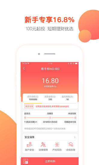3.新手专享:注册立送6666元体验金+16.88%高息年化