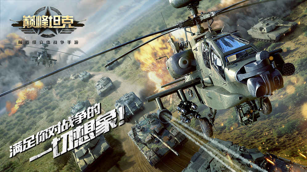 《巅峰坦克》是一款主打多维载具,陆空对战的竞技手游。全球资深战争题材研发团队倾力打造,致力于为您提供跨时代的多维现代战争竞技体验。您将在游戏中体验气势恢弘的庞大战争,2000x2000地图,12v12团战,高清画质,冰雪绝地,风车小镇,荒漠戈壁,为您展现多维现代战争的视觉盛宴。您可以驾驶直升机在天空自由翱翔,不再被单一维度的地面对战所局限。在武装直升机、主战坦克和装甲车间自由切换,体验陆地与天空三维一体化的全方位竞技模式。每种载具可以装配三种不同的武器。让坦克配备机枪、直升机装载导弹,改装您的战车,挖掘它的性能,DIY属于自己的钢铁猛兽。引入智能评级制度,为您自动匹配实力相近的对手,拒绝分房碾压。战场交锋,棋逢对手。在不久的未来,我们将引入超时空战场,实现二战经典载具与现代装甲同场竞技。满足你对战争历史的探索,实现颠覆级的立体战争体验,它将是2018最值得期待的战争游戏!【关注我们】网站:http://tk.yingxiong.com/QQ群:628859630