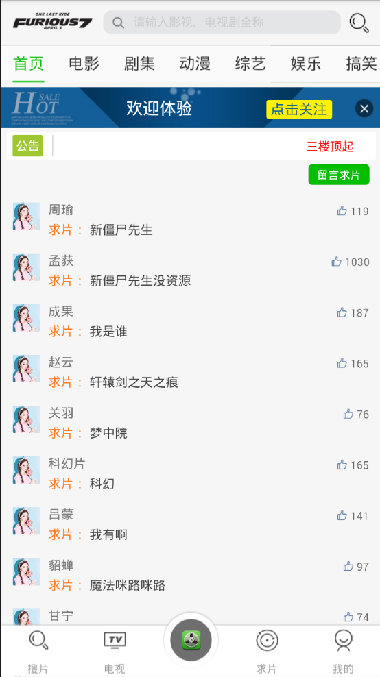 5.龙仔影院app提供用户留言栏目,能够收集用户喜爱的视频提供免费观看。