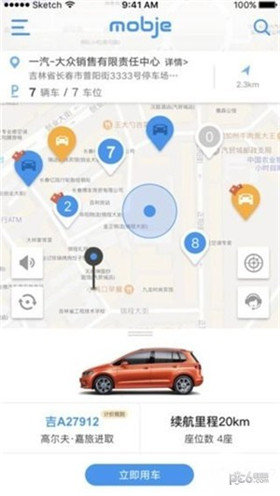 通过摩捷出行app就可以搜索到附近空闲的车辆,车型也很豪华.