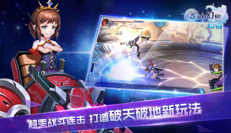 《云中幻想》是一款3D回合制强动作RPG手游。游戏不仅拥有回合制游戏丰富的烧脑策略元素,还能够让玩家体验到动作游戏紧张刺激的战斗体验。游戏采用当前最主流的二次元美术风格,请来顶级声优团队配音与人物个性完美契合,结合战斗中绚丽的战斗光效动作,以及任务场景呈现出震撼人心的视听盛宴。养成竞技双模式相互结合,带玩家进入到一个全新的回合制战斗手游的世界。游戏以东方幻想元素为基调,描绘一个跨越无数平行世界的传奇故事。收集羁绊英雄撰写你的英雄传说谁是你的羁绊英雄?百位著名历史英雄卡牌等待你来收集!带着你的羁绊英雄们一起穿越到各个时代完成时代任务,撰写属于你的英雄传说。热血策略战斗超爽连击快感不一样的策略游戏,兼具回合制游戏的策略性和ARPG游戏的动作性,以强动作再现动作性格斗手游的打击感。连招、浮空连击、三层天地场景破坏等集艺术美感与打击快感于一体的格斗动作,让回合制战斗变得与众不同。远征险境,挑战boss雪山、沙漠、山地……传说中的宝藏就隐藏在这些让人望而却步的死亡之境中,随着玩家等级的上升,这些地图都将逐步开放,在击败boss后,你可以获得海量的信物升级材料、金币、经验药水和神器炼灵材料。召唤守护神,克敌制胜就是这么任性,威武神气、战力强大的守护神免费送。身为你的专属守护神,会在战斗中的关键时刻出现在你的身边,用强大的神力释放守护技能,给你加上强力BUFF或者把敌人打个满屏开花。百变Q萌妖精,诙谐逗趣Q萌小伙伴-守护妖精可爱登场。可爱的妖精宝宝们都有自己的星座哦,根据星座与英雄契合,契合度高获取的属性更强。不管是在主城里面,还是在战斗当中,它们随着你上天下地,跋山涉水,与你形影不离,还会不时装个可爱卖个萌,治愈你疲劳的心灵。最重要的是,会给主角加属性!培养越高加得越多!除此之外,还有世界BOSS战、竞技场等PVP和PVE玩法。