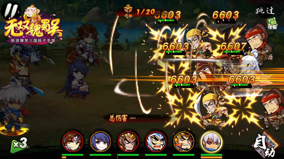 节操有限,脑洞无限!《无双魏蜀吴》是一款画风崩坏暴走,剧情鬼马无厘头的魔性三国手游。面对穿越到莽莽乱世的主角,家喻户晓的三国英雄将另类演绎超时空之旅,上演混乱搞笑的欢乐日常~烧脑的阵容搭配,浪漫的红颜邂逅,出其不意的江湖奇遇,激动人心的历史事件,Q萌逗趣的宠物饲养,全程反转,笑点不断。更有同名国漫给你带来双重爆笑体验,欢迎来个这个别具一格的三国世界!【段造英雄鬼马开局】熟悉的英雄,不熟悉的味道~刘皇叔化身软萌暖男、冷酷枭雄曹操也爱眼线?诸葛亮成为高冷男神?三国智计赢天下,漫三国各个都是段子手~!想的到的有趣,想不到的脑洞,《无双魏蜀吴》将带来独一无二的游戏人生!【百余武将千般变化】《无双魏蜀吴》拥有百余特色武将,每个特殊武将都有专属武将技能!谈笑间技能翻飞闪爆全屏,飞灰间春回大地起死回生。六重站位触发千种变化,四方阵营引发套路无数~!寻找适合你的杀敌矩阵,创造千变万化的无双三国!【江湖奇遇各显神通】80章剧情章节,800多重难度迥异的关卡,为你带来指尖策略的畅快感受!更有概率获得惊喜奇遇,为平凡生活带来意想不到的乐趣!内置两种战斗模式,攻克强敌即时开启战斗!释放技能,拳拳到肉,策略与战斗的融合,智谋与操作的双重刺激【有温度的三国等你来玩】这是一款与无聊抗争的卡牌三国!军团模式让你随时寻找与基友共同战斗的感动,红颜系统可与小姐姐随时互动,宠物养成让你没有猫也能成为人生赢家~!让我们一起释放游戏天性,找回真正的游戏乐趣,《无双魏蜀吴》世界为你带来永不停歇的欢乐日常