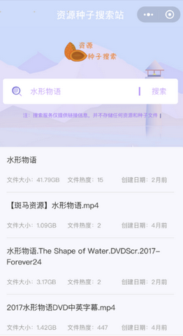 在微信中搜索“电影资源搜索站”即可进入小程序