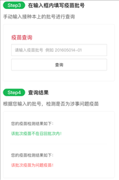 目前,360搜索的问题疫苗查询工具支持此次披露的两批次问题疫苗的“召回”信息展现,在PC端和移动端均可查询。通过360搜索推出的问题疫苗查询服务,用户可以快速知晓自己的疫苗是否为问题疫苗。