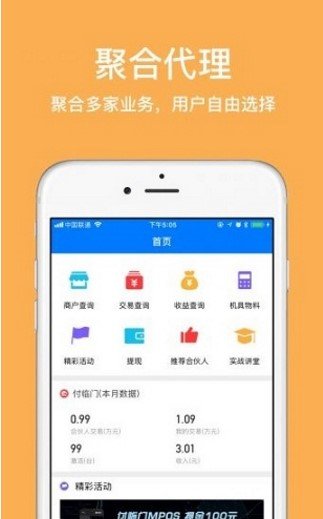 我们提供了各家第三方支付公司MPOS代理、各大行信用卡发行代理、有资质有背景的正规贷款代理等多类型的代理业务,同时提供了团队管理、智能分析等各类辅助业务的便捷功能。