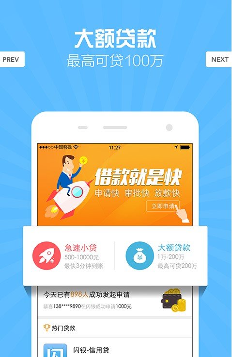 【急速小贷】跟全国主流的线上贷款产品都有合作,无需借款人再次下载放款产品的APP,在财运来贷款APP中即可在线一站式完成整个申请流程,提高了借款人借款效率,同时也提高了放款端放款效率。
