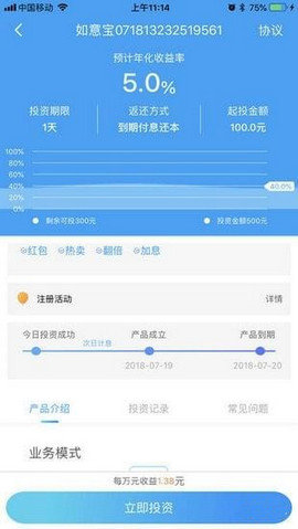 如意钱袋将利用自身的技术与行业背景优势,银行级的风险管理体系,为投资者提供安全、专业的理财信息服务。