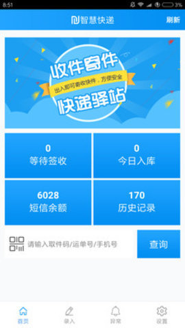 智慧快递是一款快递员办公配送神器,他的功能有扫描录入单号手机号、一键群发通知、自动生成货号、货号查询、异常通知统计、通知模板自定义选择等。有需要的朋友赶紧下载使用吧。